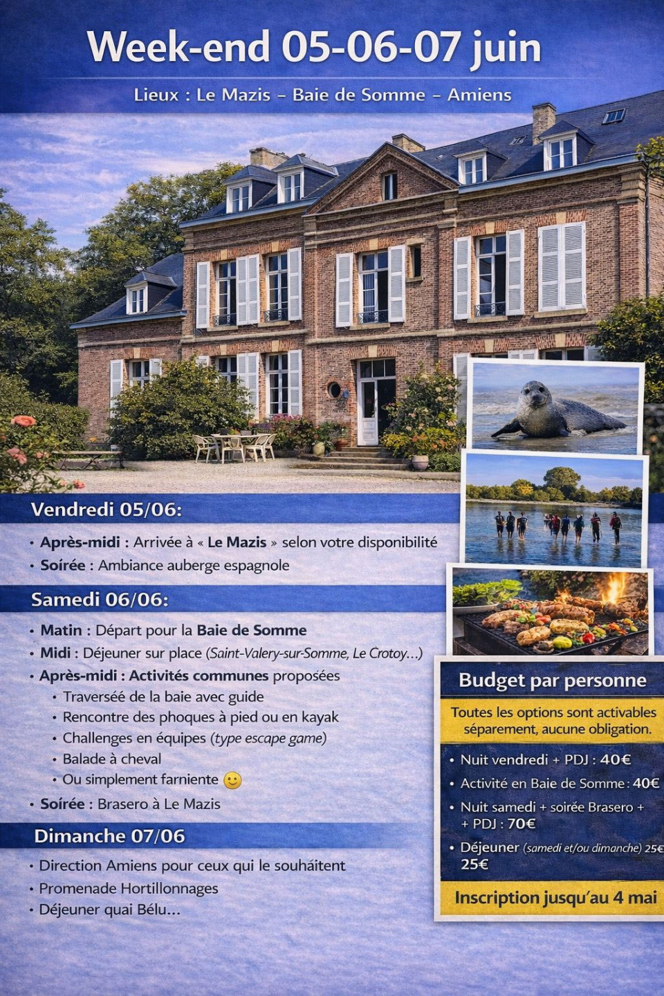 Week-end : "Le Mazis" - Baie de Somme - Amiens : 5, 6 et 7 juin 2026